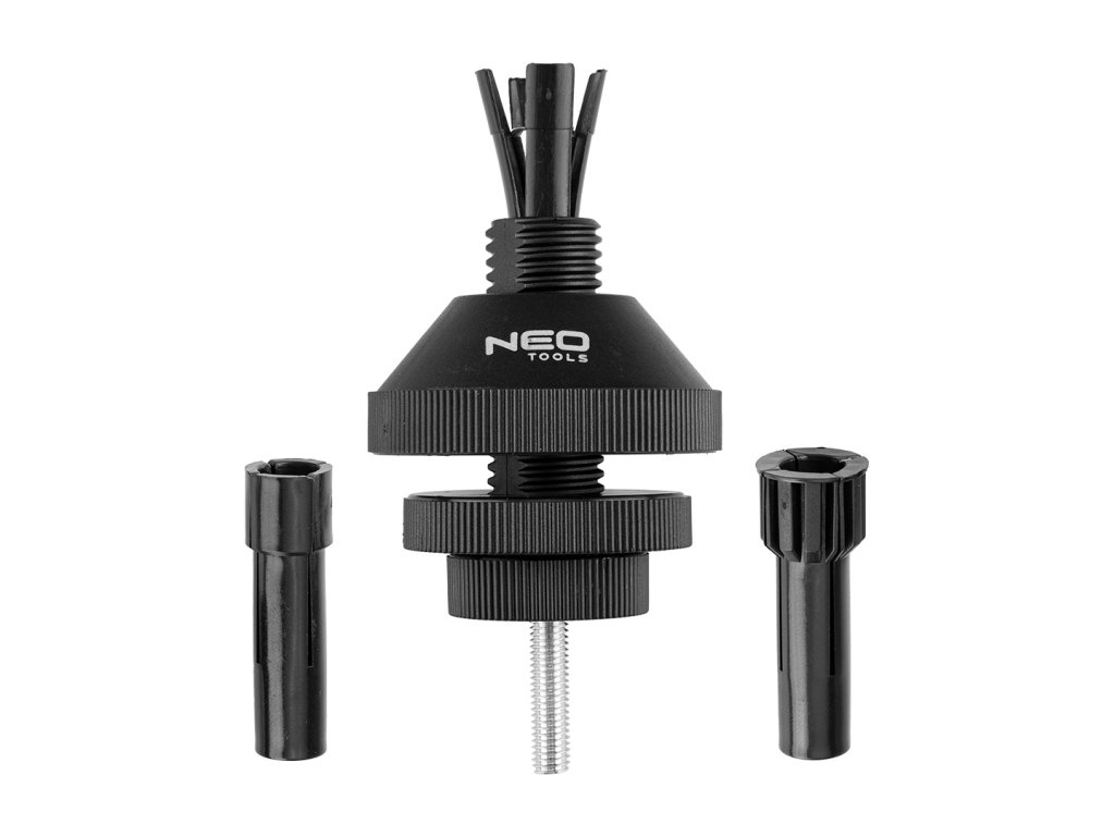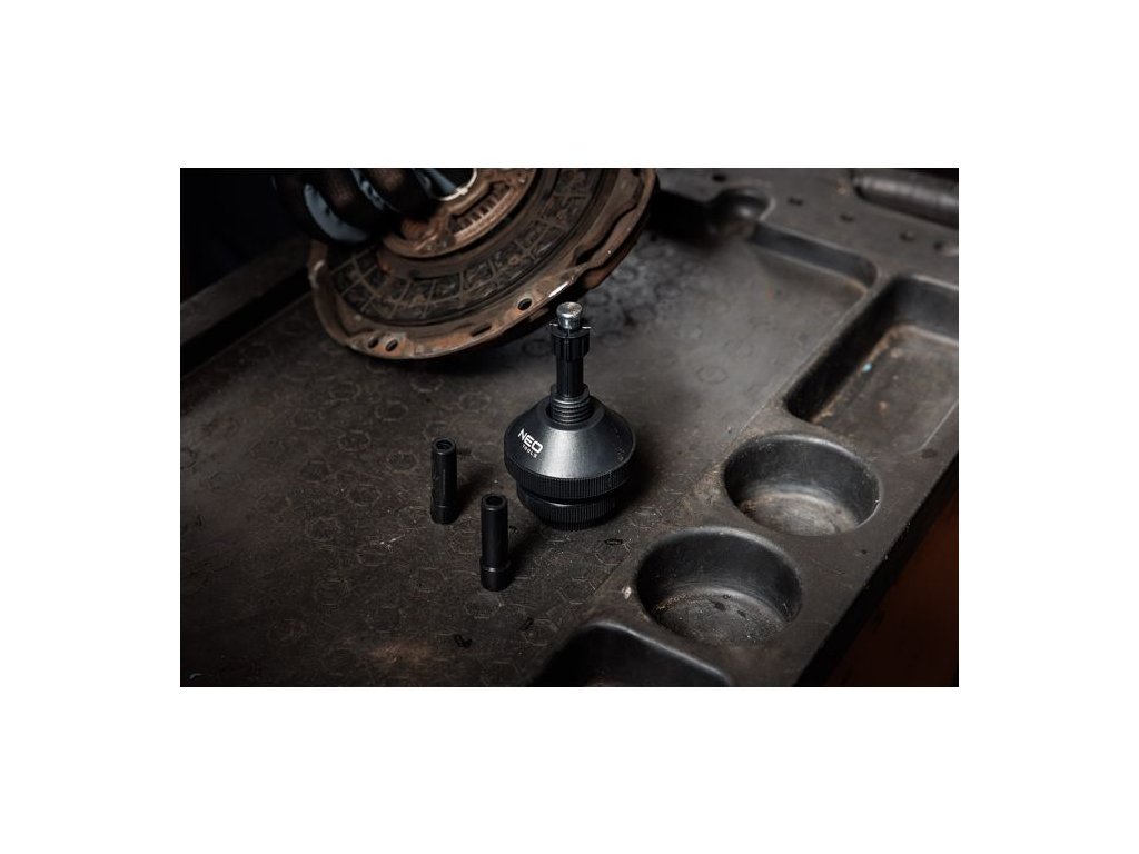 Univerzální sada na centrování spojky NEO TOOLS 11-172 je určena k přesnému vystředění lamely spojky při montáži. Díky svému univerzálnímu provedení je vhodná pro otvory o průměru od 15 do 28 mm.