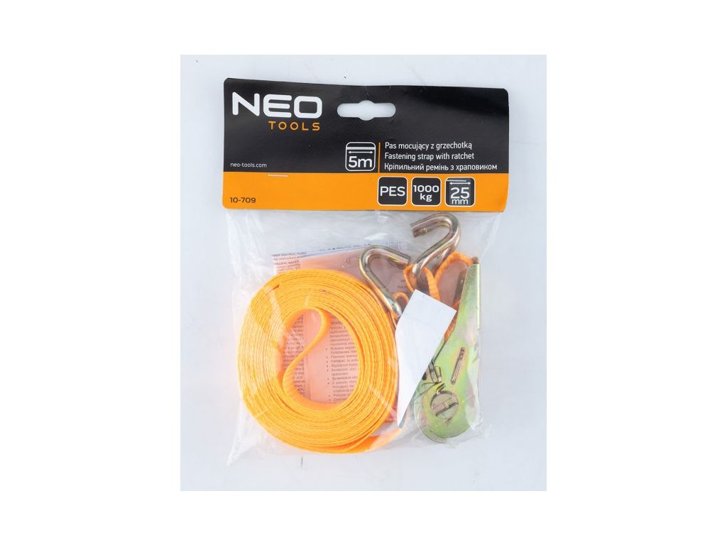 Upínací pás s ráčnou NEO TOOLS 10-709 je spolehlivým řešením pro bezpečné zajištění těžších břemen při přepravě nebo skladování. Díky šířce 25 mm a délce 5 m nabízí dostatek flexibility a pevnosti i pro objemnější náklad.