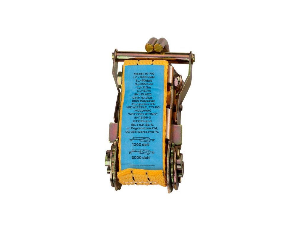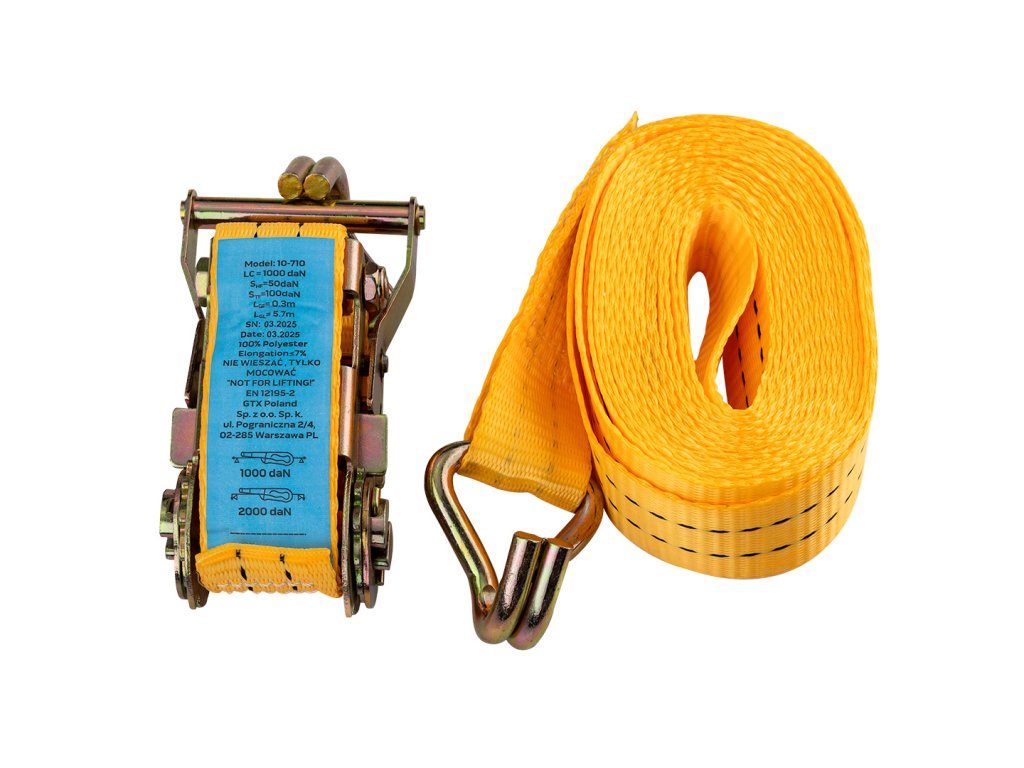 Pás je vyroben z vysoce odolného polyesteru (PES), který zajišťuje pevnost, dlouhou životnost a odolnost proti oděru. Nosnost až 2000 kg poskytuje jistotu při upevňování i velmi těžkých nákladů.