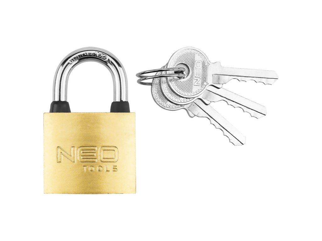 Součástí balení jsou tři klíče, které zvyšují komfort používání a umožňují mít vždy k dispozici náhradní klíč. Visací zámek NEO TOOLS 30 mm je ideální volbou pro uživatele, kteří hledají jednoduché, ale účinné zabezpečení majetku doma, na zahradě i na cestách.
