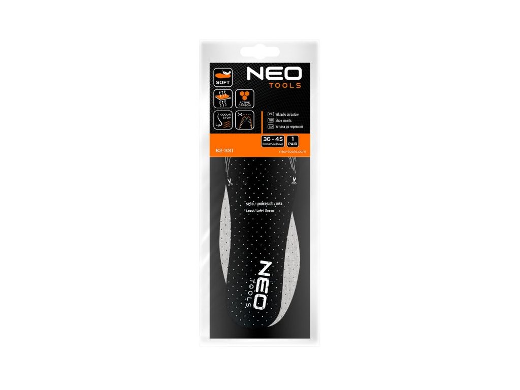 Vložky do bot s aktivním uhlím NEO TOOLS (82-331) jsou univerzálním řešením pro každodenní pohodlí a hygienu nohou. Jsou vhodné do pracovní, turistické i běžné obuvi a díky možnosti zkrácení na velikost 36 až 45 perfektně padnou do jakékoliv boty.