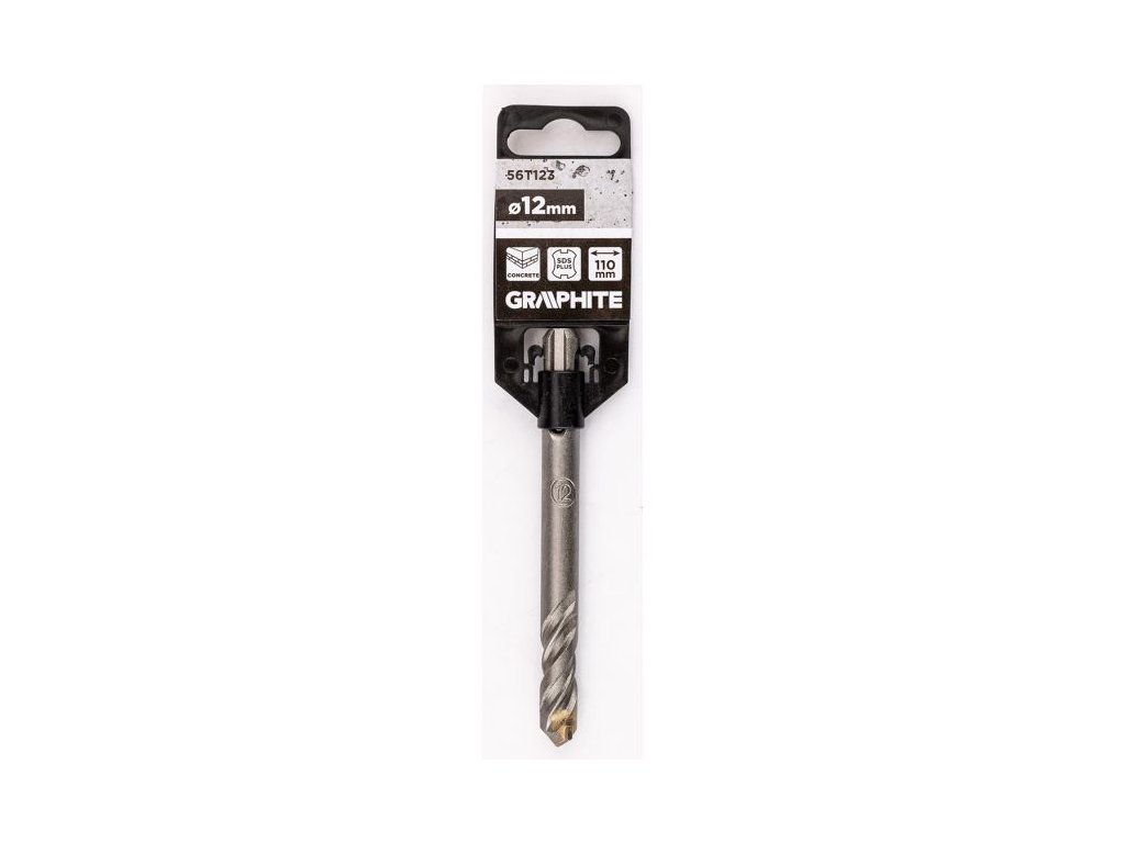 Vrták do betonu SDS Plus GRAPHITE 56T123 o rozměrech 12 × 110 mm je spolehlivý nástroj určený pro vrtání do tvrdých stavebních materiálů, jako je beton, cihla a kámen.