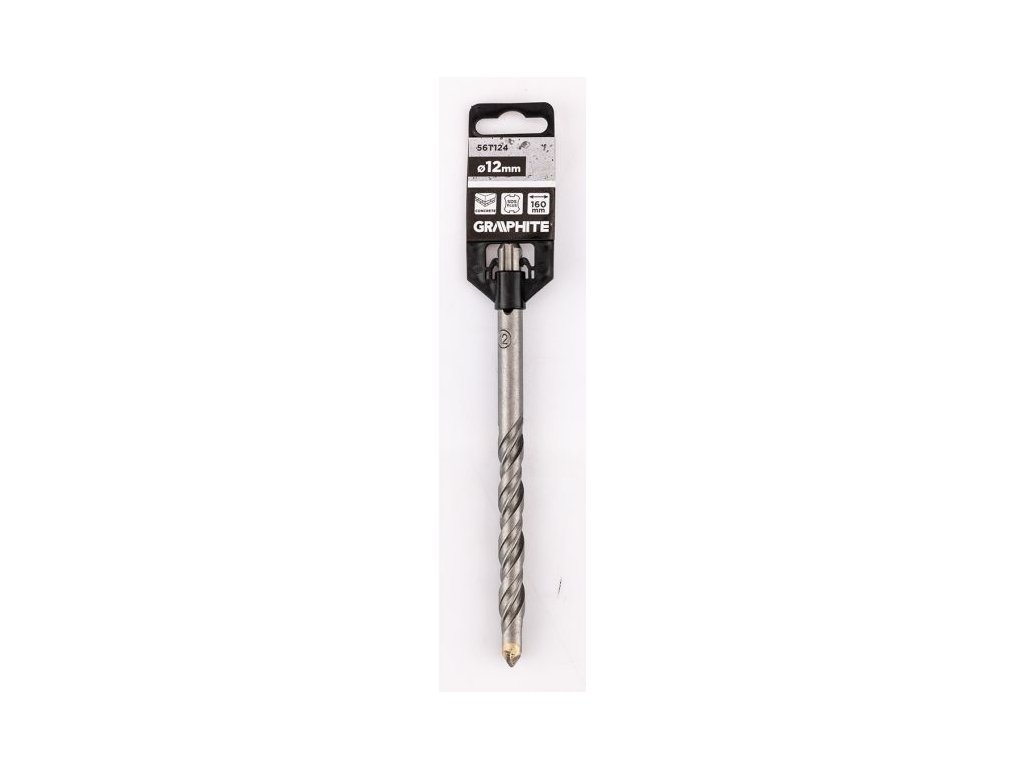 Vrták do betonu SDS Plus GRAPHITE 56T124 o rozměrech 12 × 160 mm je kvalitní nástroj určený pro vrtání do tvrdých stavebních materiálů, jako je beton, cihla a kámen.