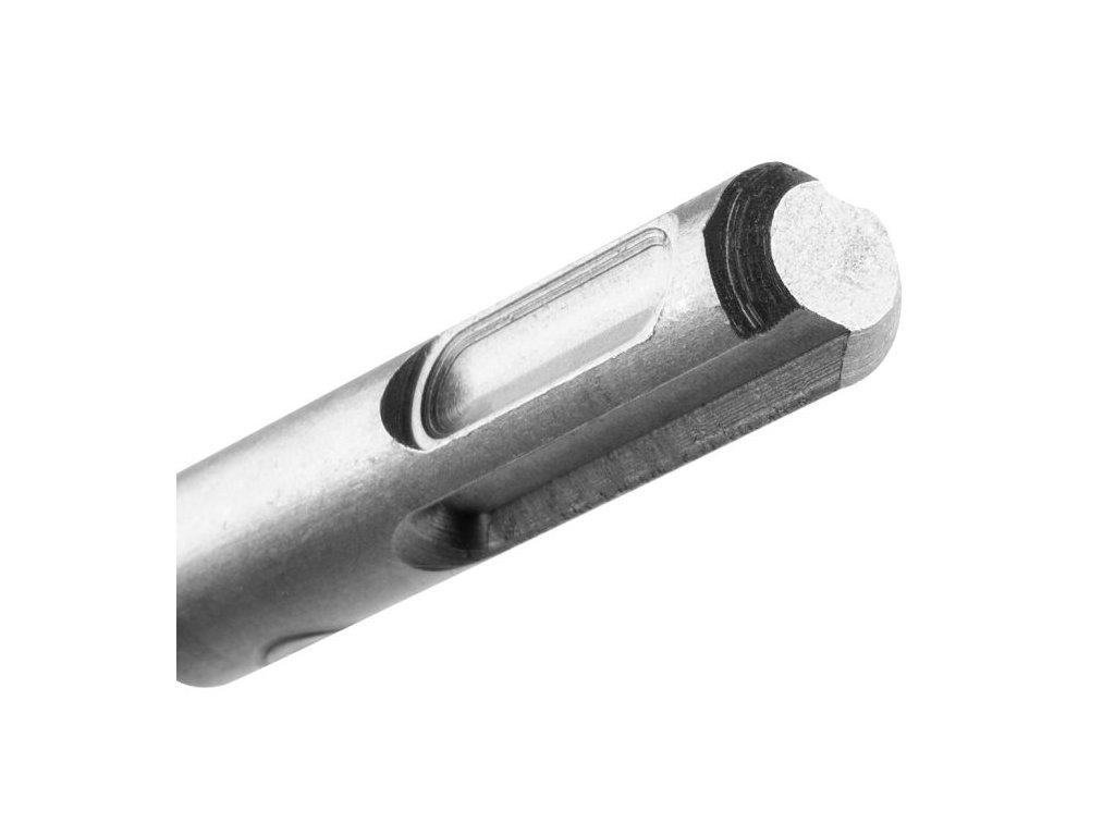 Díky dvojité šroubovici efektivně odvádí odvrtaný materiál, zajišťuje hladký průběh vrtání a snižuje zahřívání nástroje. Upínání typu SDS Plus umožňuje pevné uchycení vrtáku a jeho rychlou výměnu v příklepových vrtačkách.