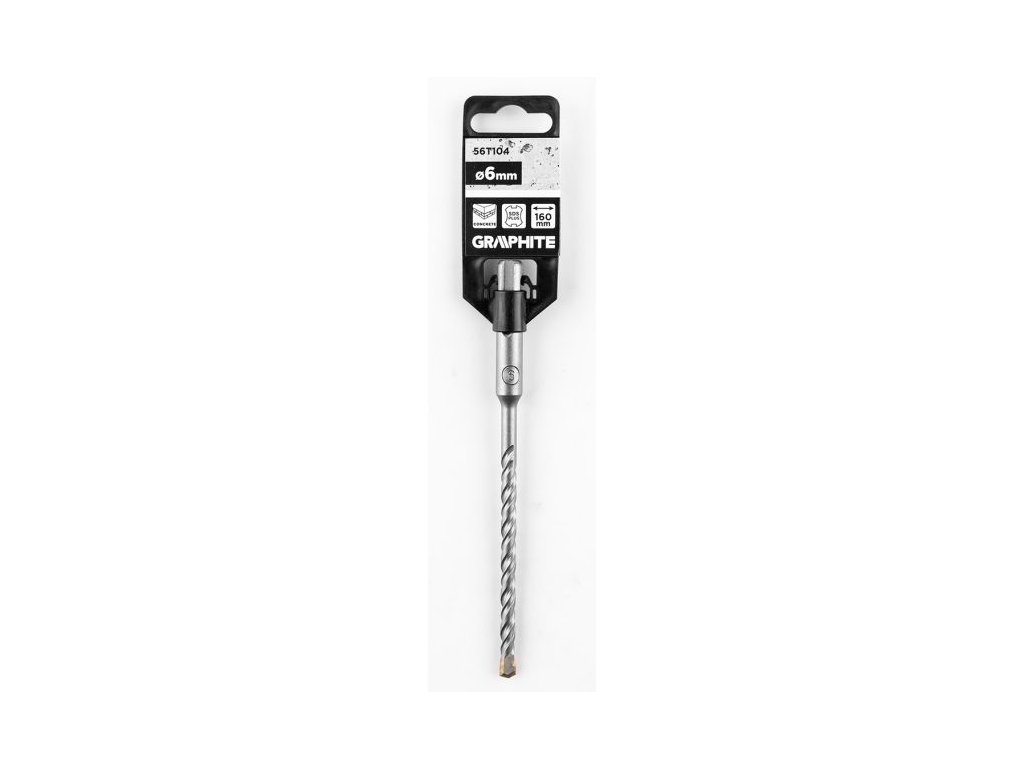 Vrták do betonu SDS Plus GRAPHITE 56T104 o rozměrech 6 × 160 mm je spolehlivý nástroj určený pro vrtání do tvrdých stavebních materiálů, jako je beton, cihla a kámen.