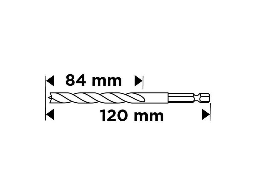Šestihranný vrták do dřeva GRAPHITE 54T582 o rozměrech 10 × 120 mm je spolehlivý nástroj pro vrtání do dřeva, překližky a dřevotřísky.