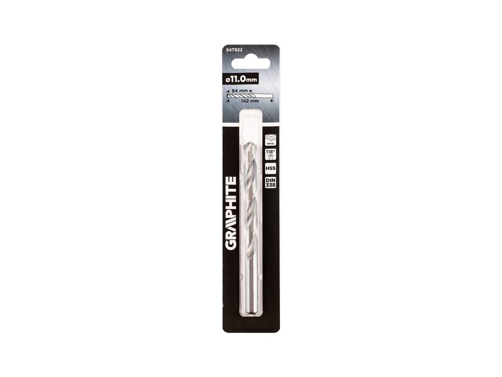Vrták do kovu GRAPHITE 54T922 o průměru 11 mm je kvalitní nástroj vyrobený z rychlořezné oceli HSS, určený pro vrtání do oceli, litiny, neželezných kovů i plastů.