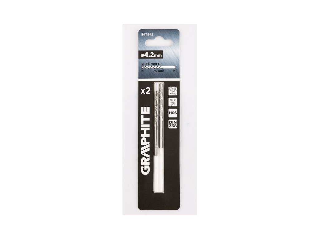 Vrtáky do kovu GRAPHITE (HSS, 4,2 mm, 2 ks, 54T942) jsou navrženy pro přesné a čisté vrtání do kovových materiálů. Díky kvalitní rychlořezné oceli HSS se vyznačují dlouhou životností a spolehlivým výkonem i při častém používání.