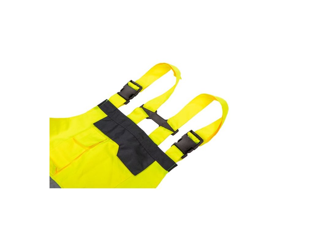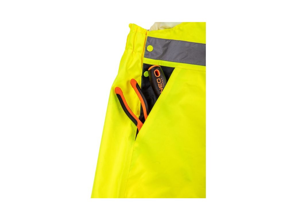 NEO pracovní kalhotky s náprsenkou (81-775-L) vysoké viditelnosti jsou praktickým řešením, které zvyšuje bezpečnost uživatele signalizací přítomnosti za všech světelných podmínek, za denního světla nebo ve tmě s umělým světlem, při osvětlení např. svítilnami vozidla.