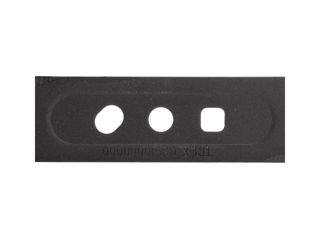 - Nůž má centrální otvor o průměru 14 mm, doplněný dvěma bočními otvory – jeden ve tvaru oválného otvoru 13,5 × 17,5 mm, druhý čtvercový 13,5 × 13,5 mm, vzdálené 60 mm od sebe (střed–střed). Konstrukce z kalené oceli odolá běžnému opotřebení i případným nárazům na kameny nebo větve.