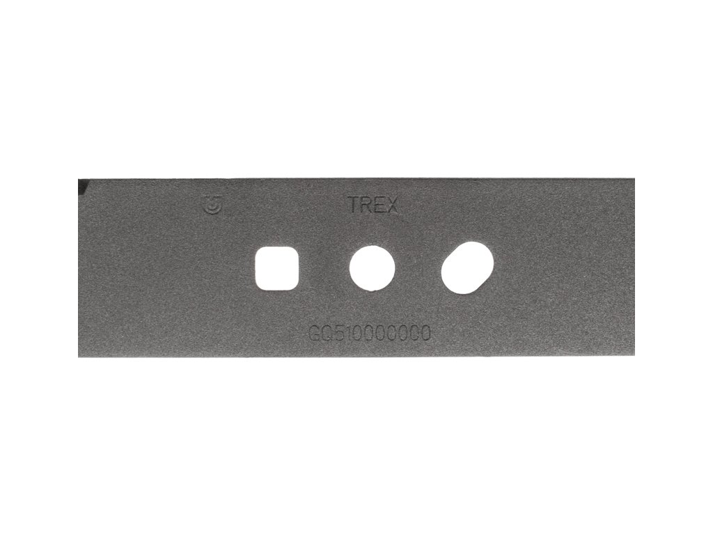 - Nůž má centrální montážní otvor o průměru 14 mm, doplněný o dva boční otvory – 13,5 × 17,5 mm a 13,5 × 13,5 mm, ve vzdálenosti 60 mm (měřeno střed–střed). Tyto rozměry zajišťují plnou kompatibilitu a jednoduchou montáž.